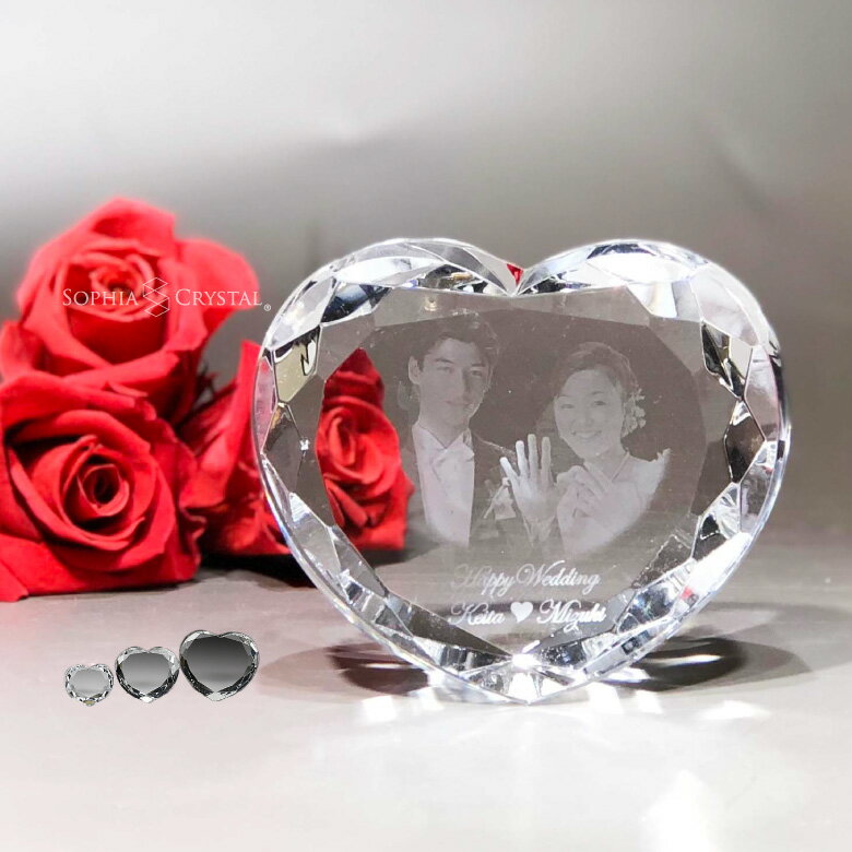 周囲のダイヤカットが美しく光を反射させるハート形のクリスタルオブジェです。手のひらサイズでどこに...